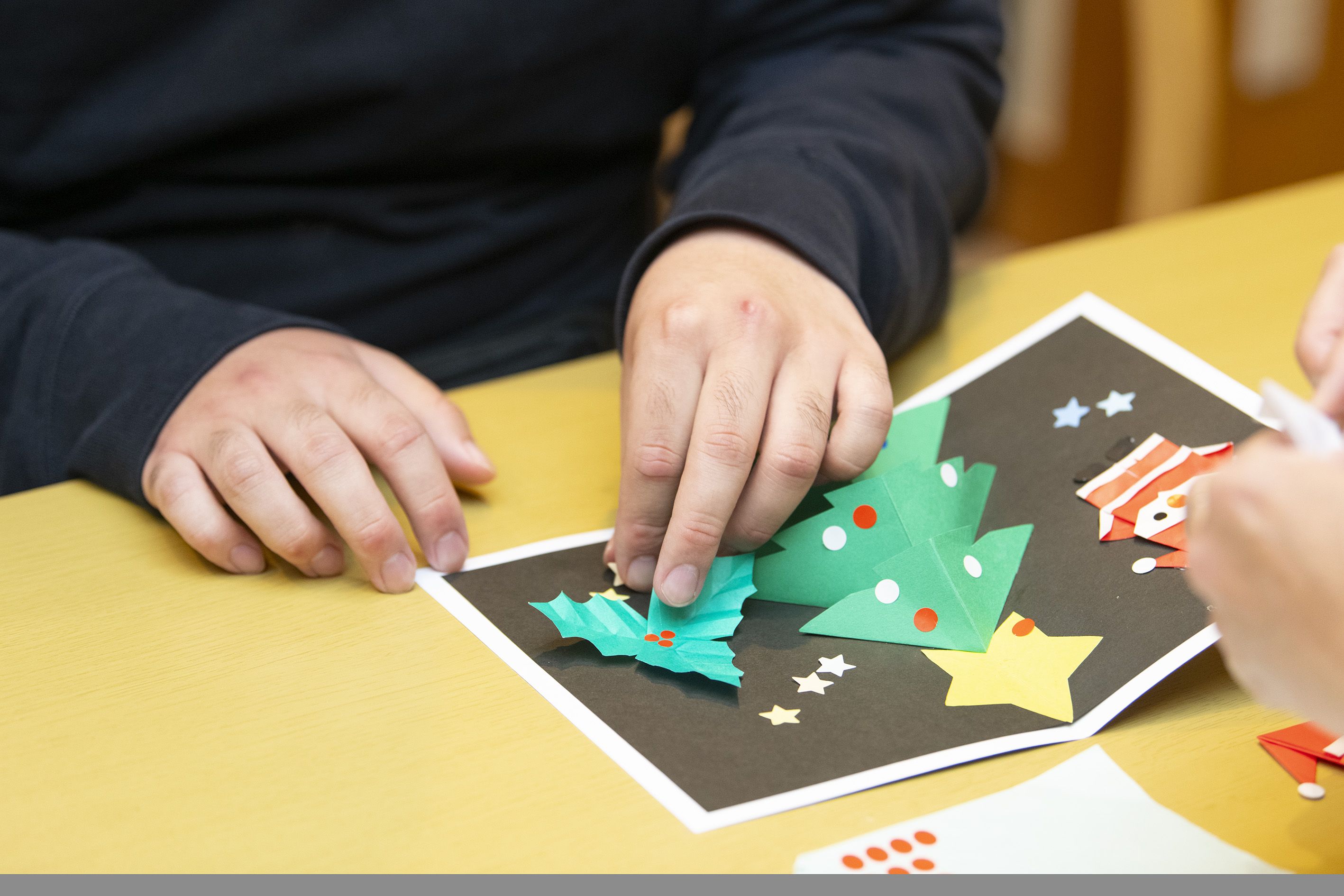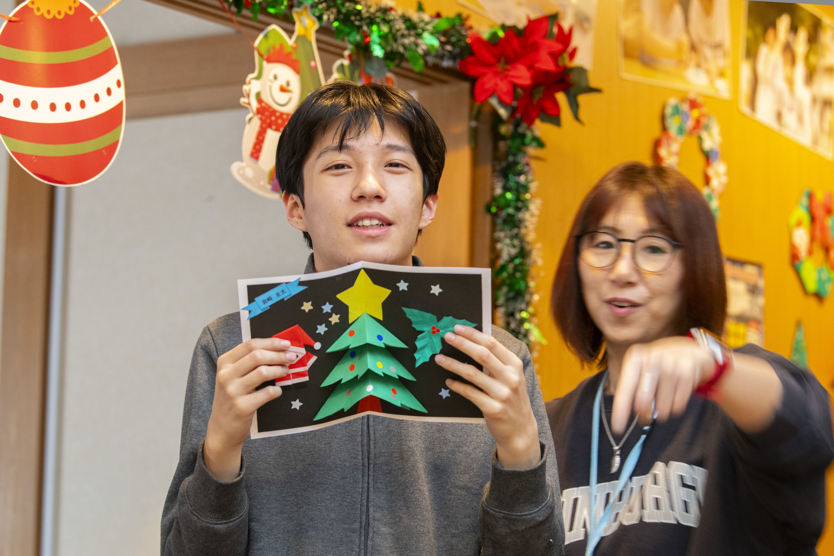 20261.26 12月の工作✂ 大変遅くなりましたが、今年も宜しくお願いいたします🐎えがおの風のメンバーさんと職員は、風邪も引かず、とても元気に過ごしています。12月はイベントが盛りだくさんで、飛び出すXmasカード、玄関の壁紙、年賀状とたくさんの工作を頑張りました✂