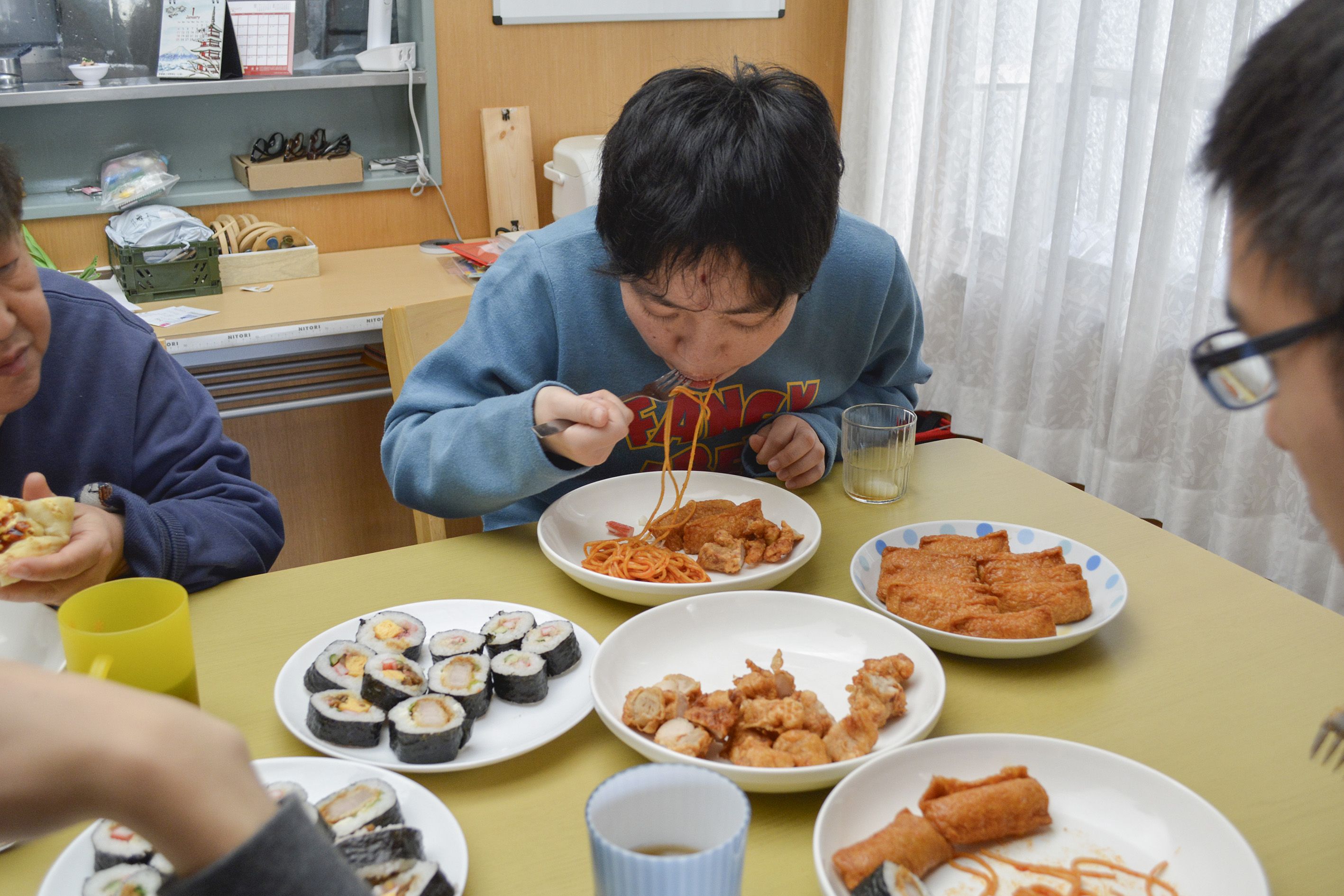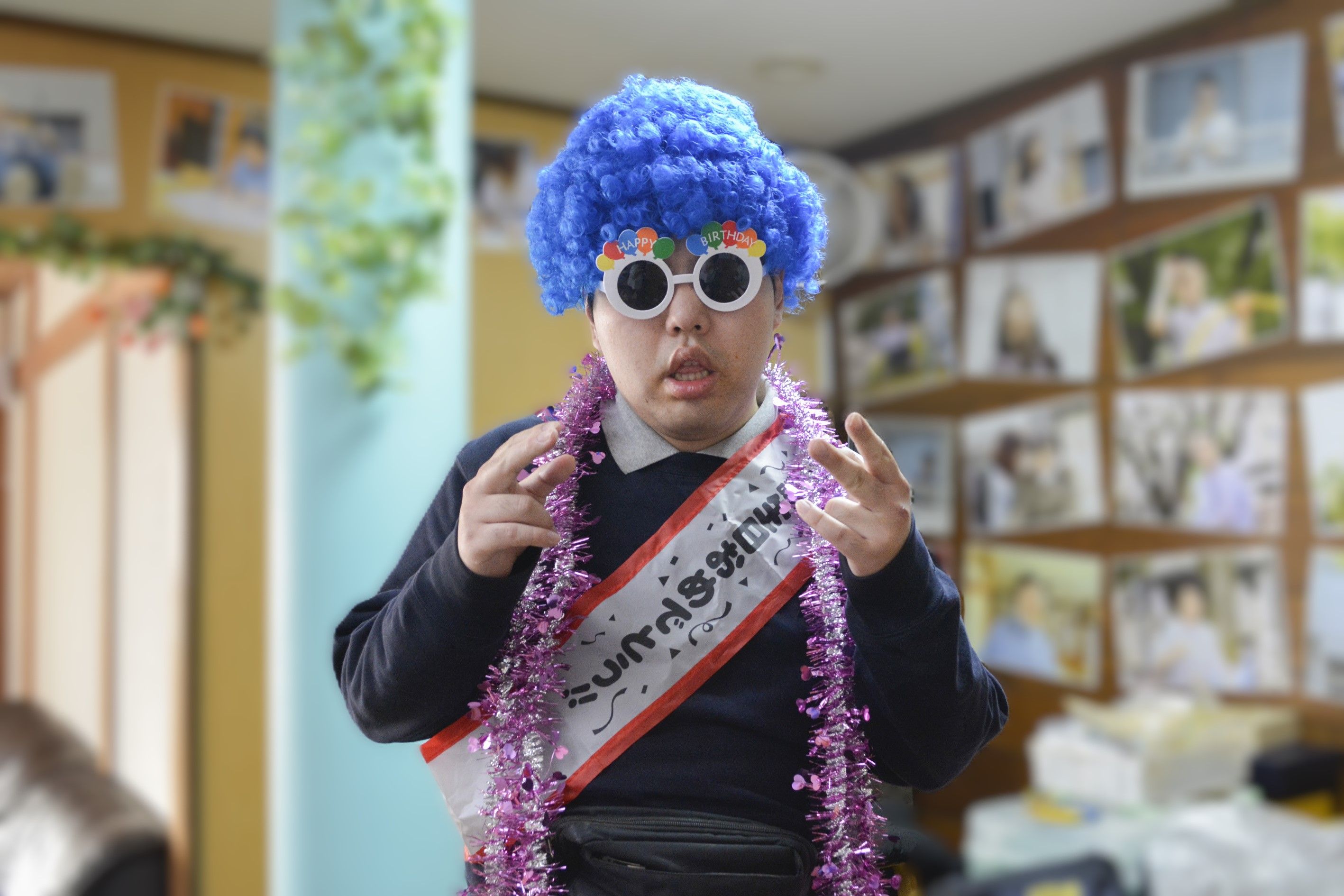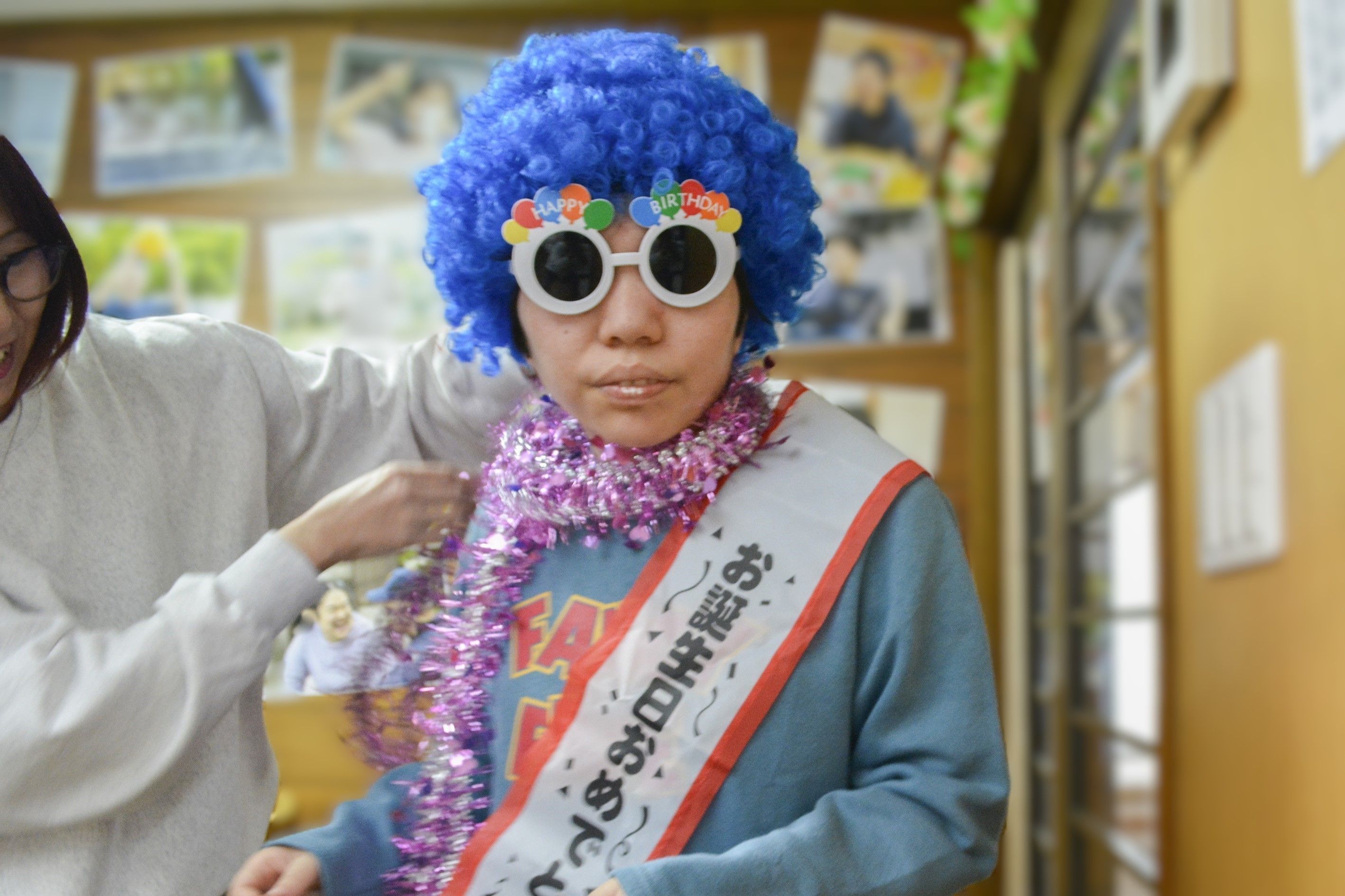 20262.4 1月のお誕生会&工作 1月は、お誕生日のメンバーさんが2人いました🎂みんなが大好きなピザやパスタ🍕🍝巻きずしやから揚げ🍗を用意して誕生会をしました。青いかつらで変装して「ハイ、ポーズ✌️」かっこ良く撮れた~📸工作では、今年も一年、みんなが笑顔で過ごせますようにとの願いを込めてお守りを作りました。みんな鞄に付けてくれています。そしてそして、毎月恒例のカレンダー。とても素敵に出来ました~💖